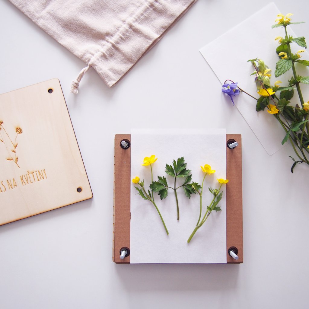 Nejprve je potřeba rostliny nasbírat a následně vylisovat. V sadě najdete originální lis na květiny, takže už vám nikdy nenavlhnout stránky ve vaší oblíbené knížce. Po vylisování rostlin přichází na řadu nalepení do herbáře. Herbář obsahuje 30 listů z tvrdého kraftového papíru, kam se vám pohodlně vejdou úlovky z celého roku. Je potažený kvalitním knihařským plátnem v přírodních barvách a potištěný autorskou ilustrací. Herbář můžete pojmout tradiční formou a využít ke studiu rostlin nebo netradičně například jako deník plný květin z vašich cest.