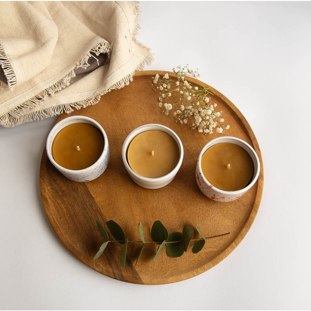 Všechny naše svíčky jsou vyráběny ručně, jsou čistě přírodní, bez přidaných barviv a parfemace. Glazura je zdravotně nezávadná.